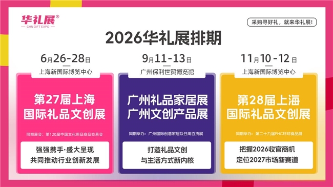 2026年6月,在上海浦东新国际博览中心,将会举办第27届上海国际礼品、文创产品及家居用品展览会(简称"上海礼品展")。华礼展作为唯一主办方,展会致力于华东礼品企业的趋势发展,起到带动发展的作用,解决礼品企业找客户难,销路难等问题!